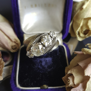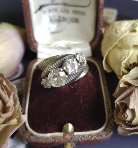 Bague Or Gris et Platine Diamants Taille Ancienne